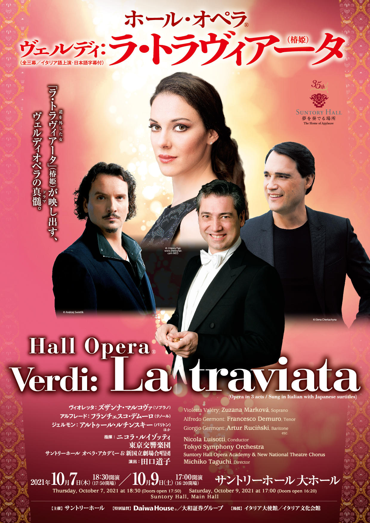 2021年10月7日(木)サントリーホールにて開催、ホール・オペラ® ヴェルディ:ラ・トラヴィアータ (椿姫)の公演記録とレビュー/コメントのアーカイブページです。