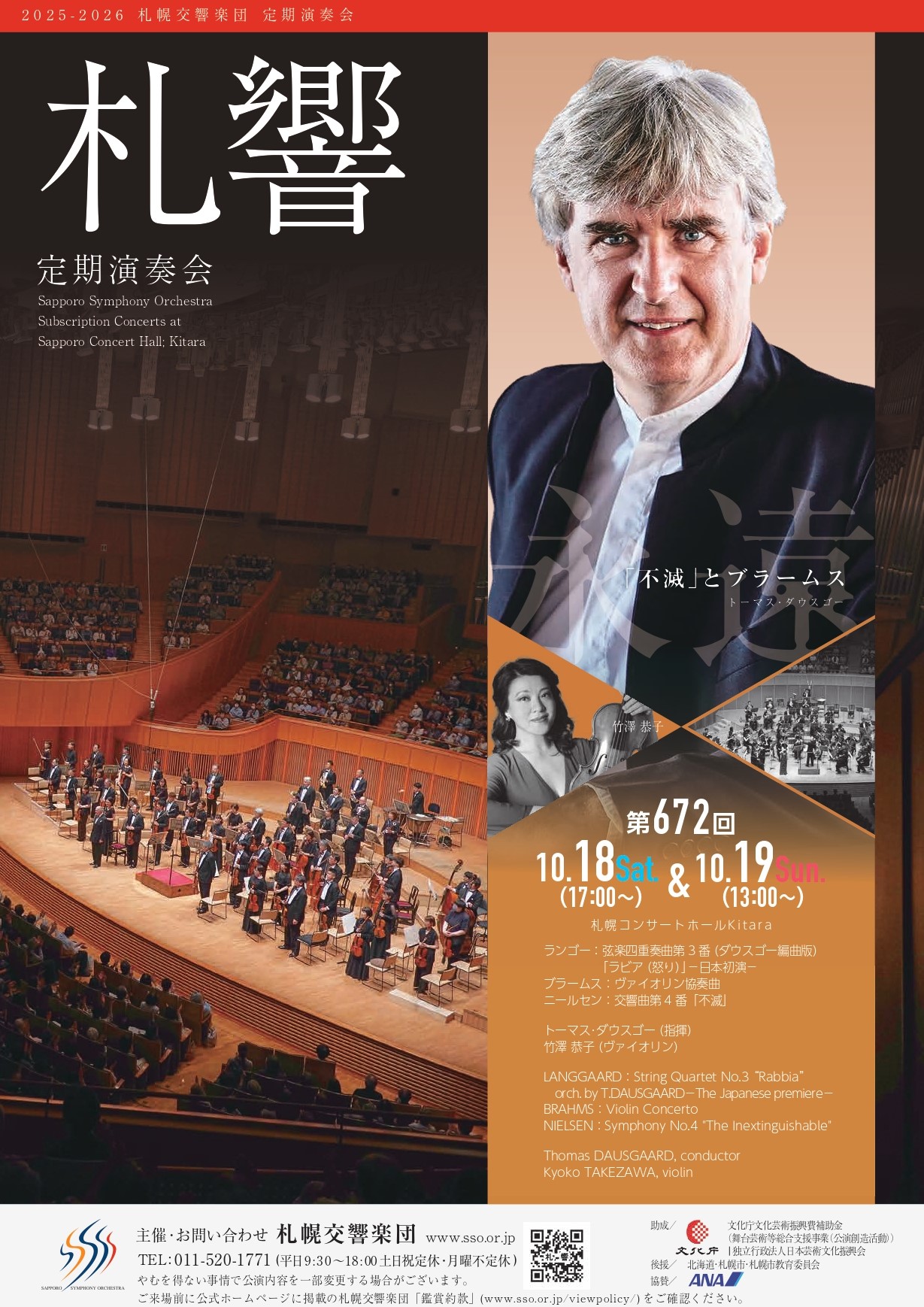 2025年10月18日(土)札幌コンサートホールKitaraにて開催、札幌交響楽団 第672回定期演奏会の公演記録とレビュー/コメントのアーカイブページです。